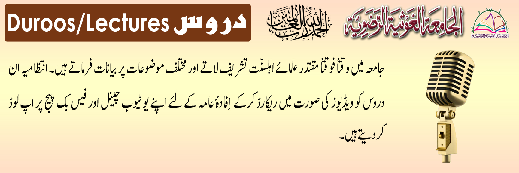 Jamia Ghausia Razavia also held various CONGREGATIONS on different occasions on Special Topics. Videos can be watched in Duroos section.